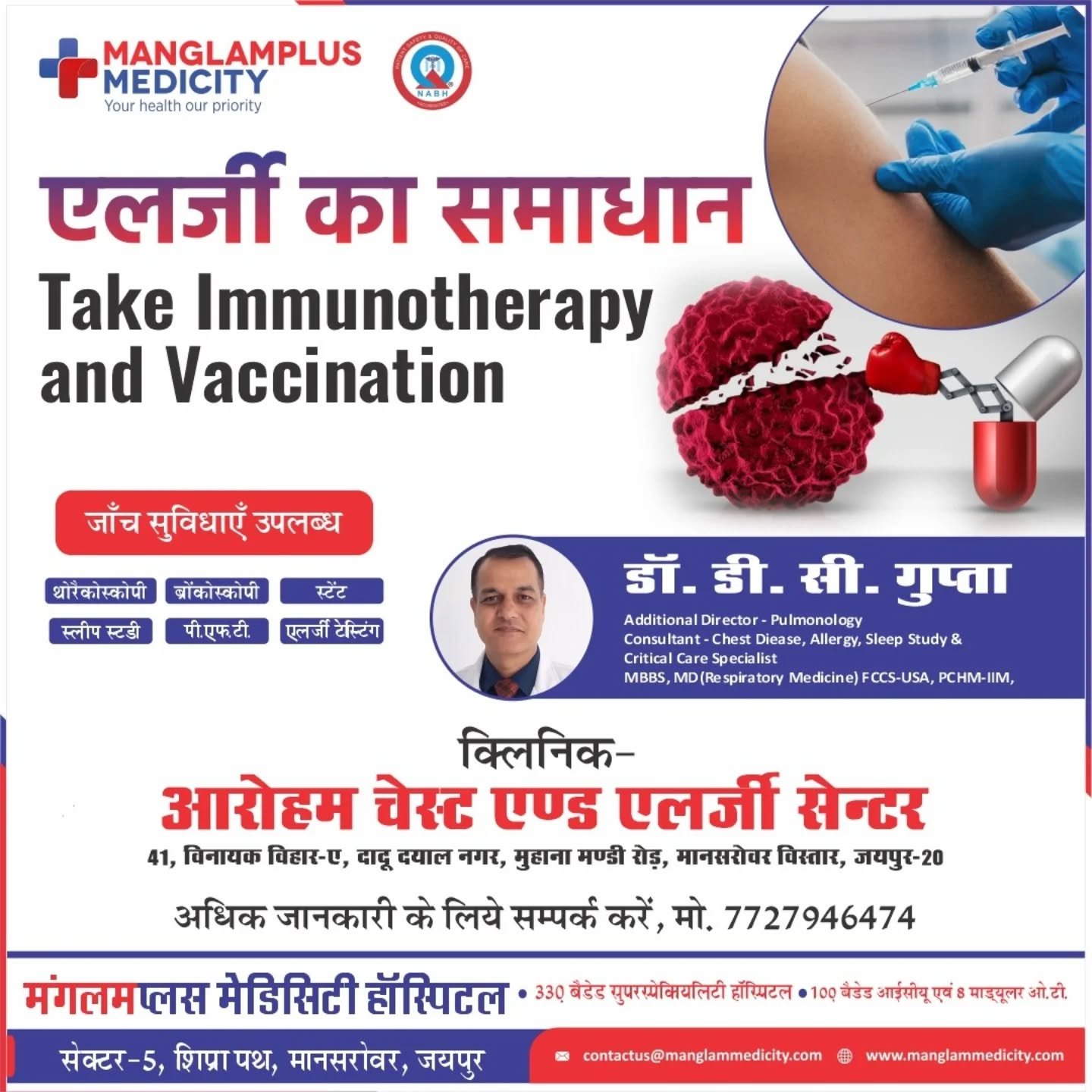 When it comes to allergy treatment, one must have someone who knows what they are doing and cares about them. An experienced allergy doctor in Jaipur, Dr. DC Gupta, has been trusted by the patients for safe and useful allergy immunotherapy in Jaipur.